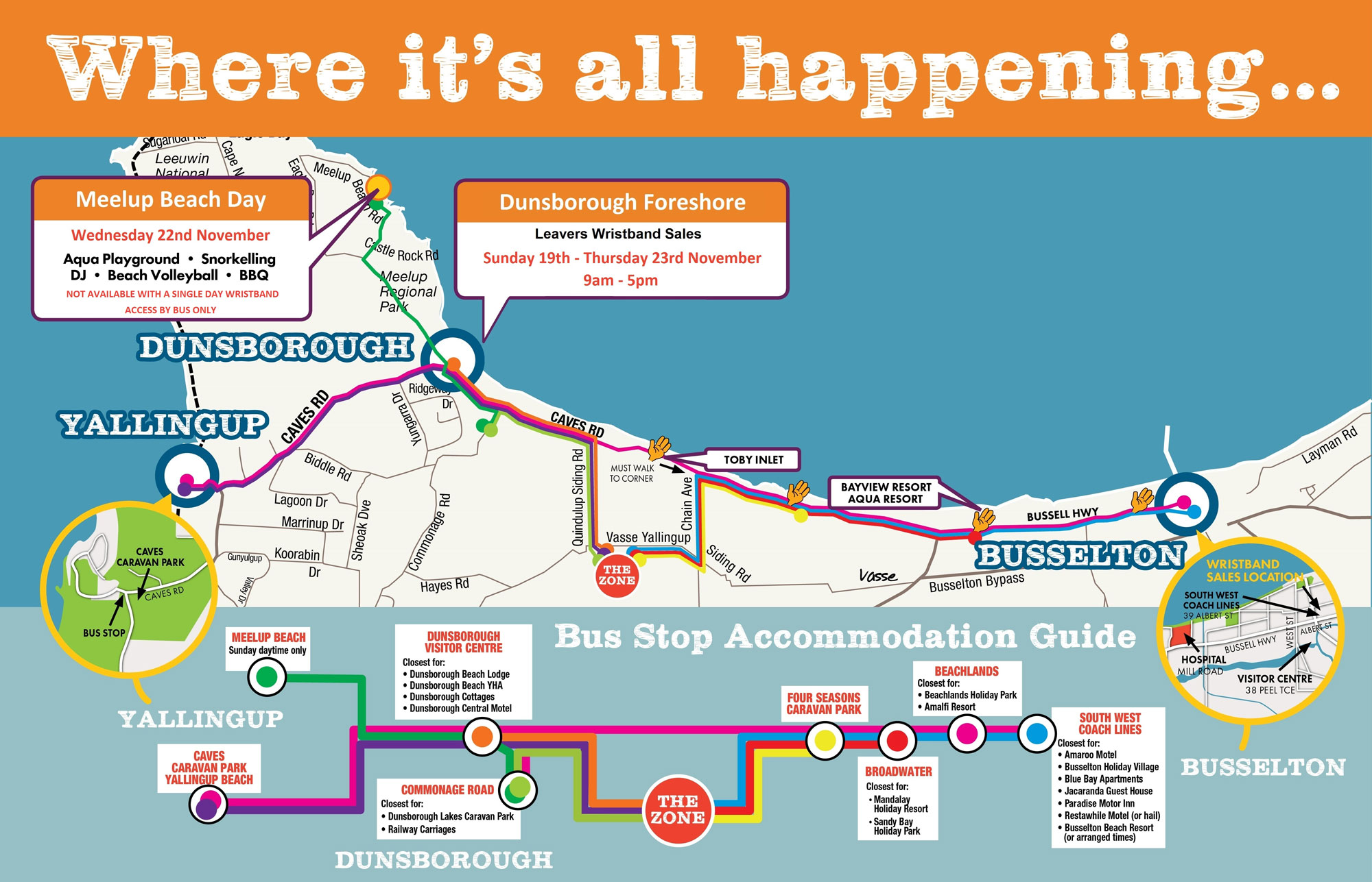 Soak up the atmosphere at the Busselton accommodation where other leavers will be enjoying the much needed time to relax after the exam period and graduating. The zone in Dunsborough foreshore is close to Busselton and it’s an easy bus ride to and from the main party area. Each night the WA police put on great entertainment in the zone. In busselton you have the best of both worlds, awesome accommodation to chill out in and close to all the action.